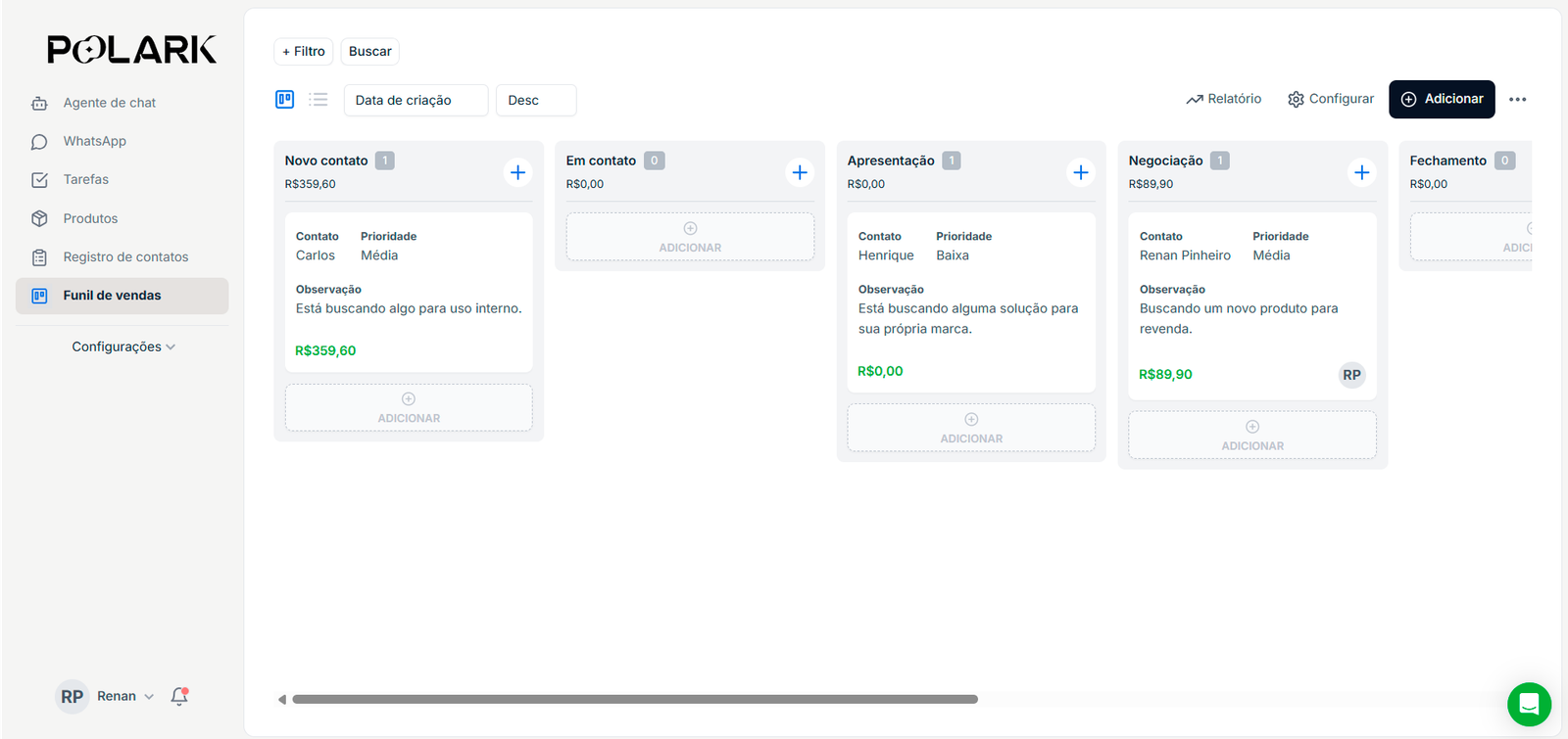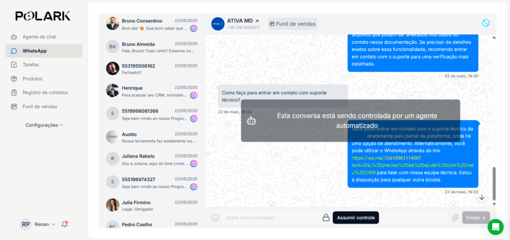 CRM fácil de usar: Automatize atendimentos, siga scripts e responda como um humano. IA pronta, configurada e acompanhada pela Polark.